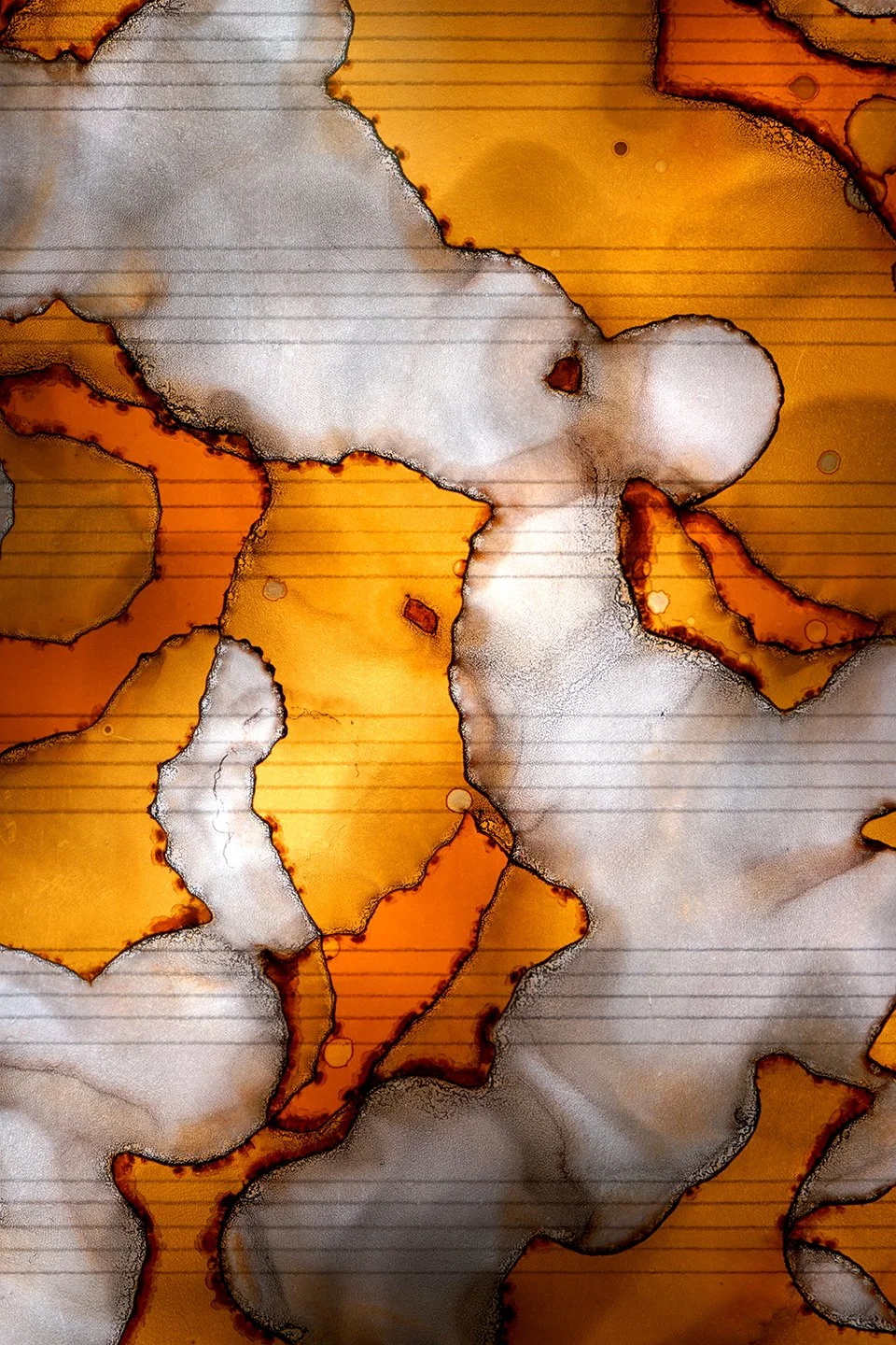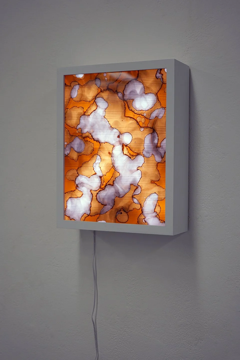 graphite and soot on vellum, lighting gel, light box